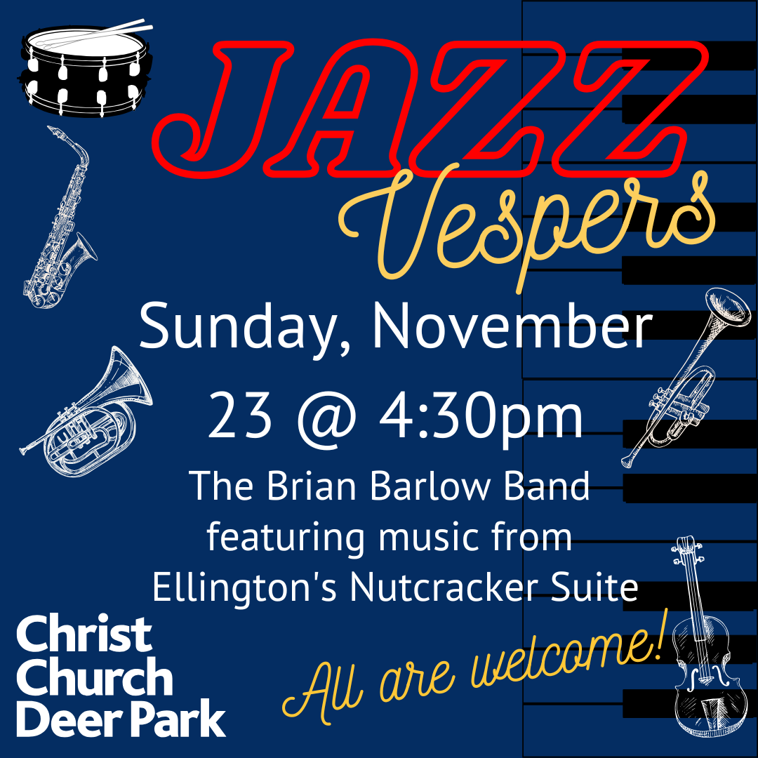 ![]() A quiet and contemplative Communion service, including Bible readings and prayers from the traditional Book of Common Prayer and a brief sermon. This service runs about 40 minutes. ![]() This is a casual, creative service that includes prayers, Holy Communion, and contemporary worship music (piano & vocals). The service is about 1 hour long. ![]() Our traditional Anglican service with organ & choir, Scripture readings, prayers, and homily. This service runs between one and one and a half hours. We also livestream this service on our website. You can watch the service here. ![]() Join us for a wonderful afternoon of jazz music with the Brian Barlow Band featuring music from Ellington's Nutcracker Suite! This informal service includes a few prayers, a short reflection, and, of course, lots of jazz. The service begins at 4:30pm and runs for about one and a half hours. All are welcome. |