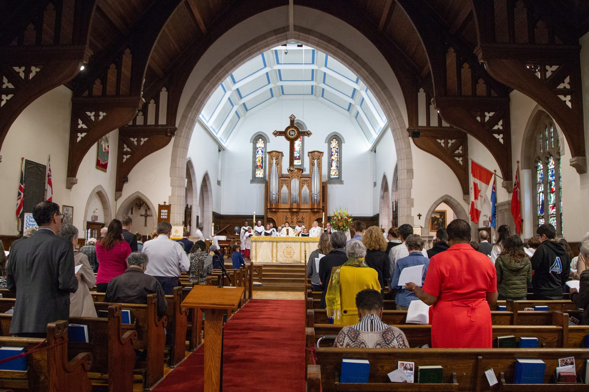 Installation required considerable changes to the chancel including moving the altar forward and arranging choir seating to either side. These renovations prompted the design and production of our award-winning Benedicite Kneelers, done in needlepoint by a dedicated group of church members.